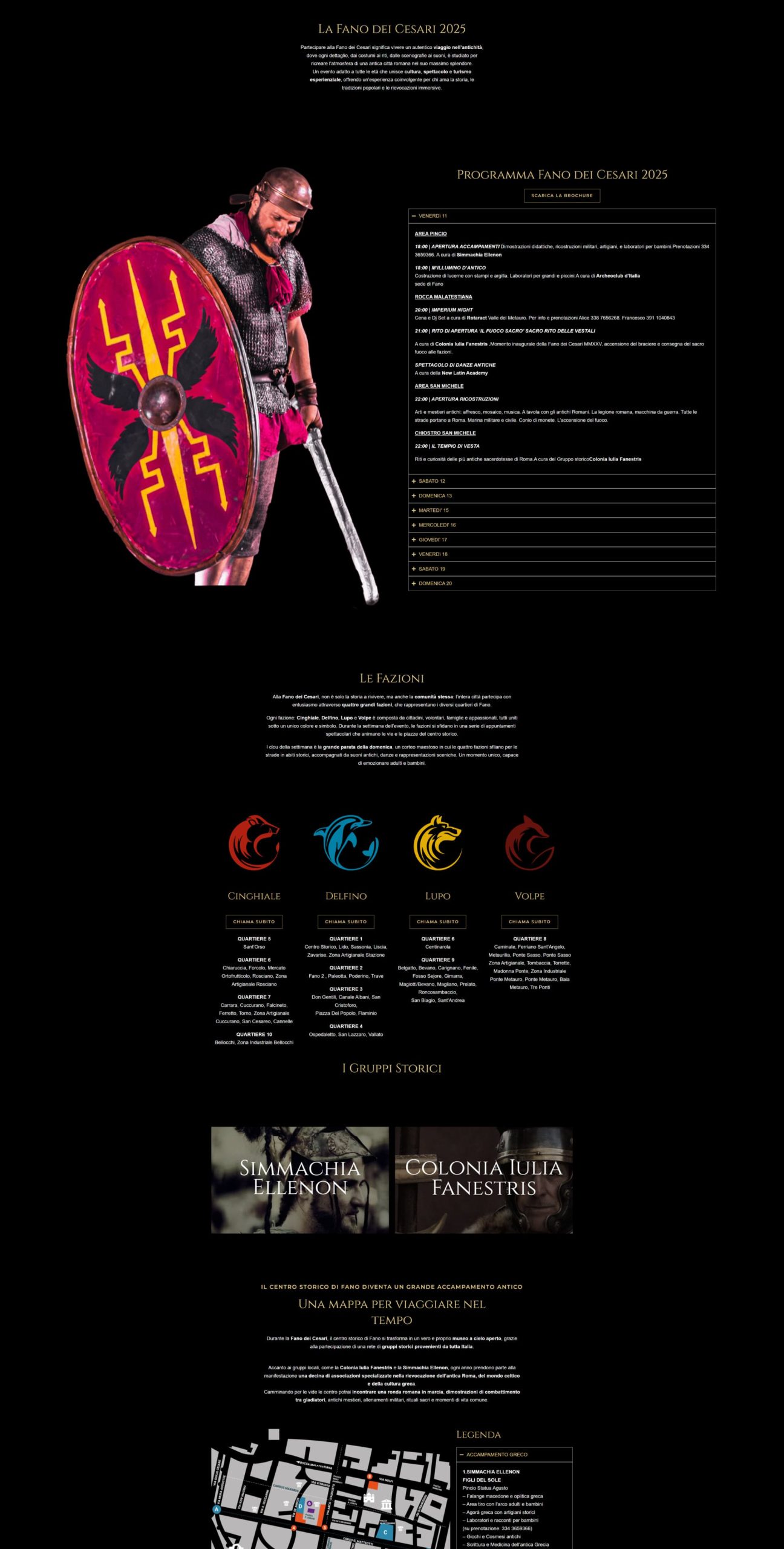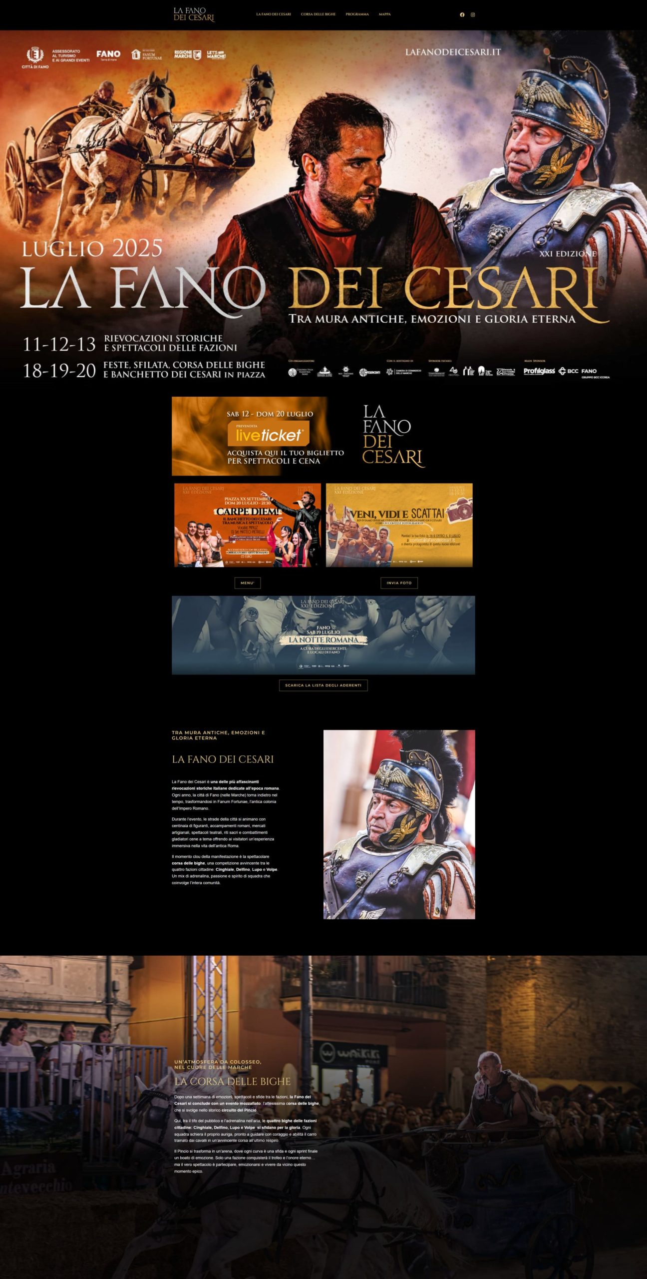 Un tuffo nella storia che ogni estate riporta Fano ai fasti dell’antica Roma. La Fano dei Cesari è rievocazione, spettacolo e partecipazione popolare. Una manifestazione per cui abbiamo curato branding, campagne offline e online, sito, social e contenuti video, dando nuova energia visiva e digitale a un evento che da ormai vent'anni fa rivivere le radici storiche della città.